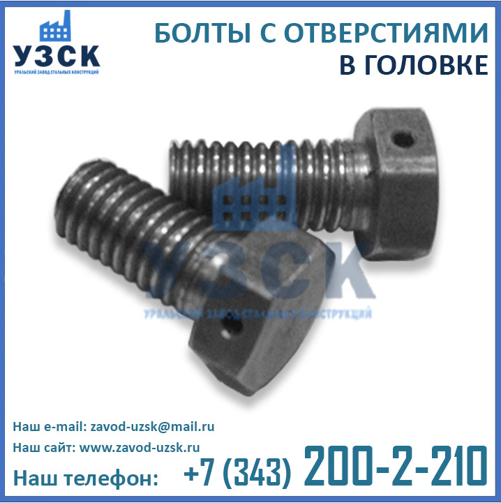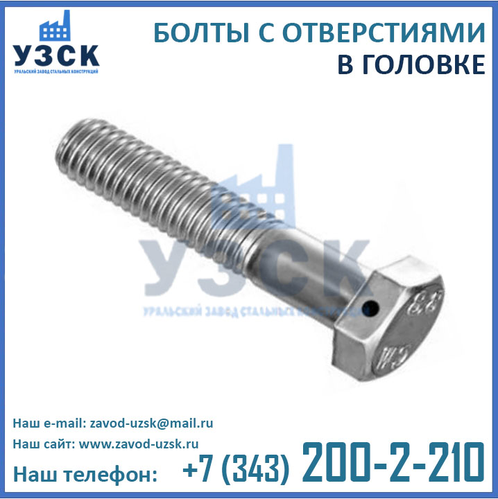 Уральским Заводом Стальных конструкций налажено производство болтов с отверстиями всех типоразмеров от М10 до М42 следующих модификаций: