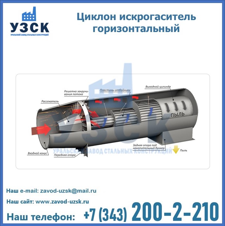 Горизонтальные циклоны-искрогасители ЦГ поставляются в Самаре в сборке или же транспортными единицами для последующей сборки, если предназначены для работы с большими объемами.