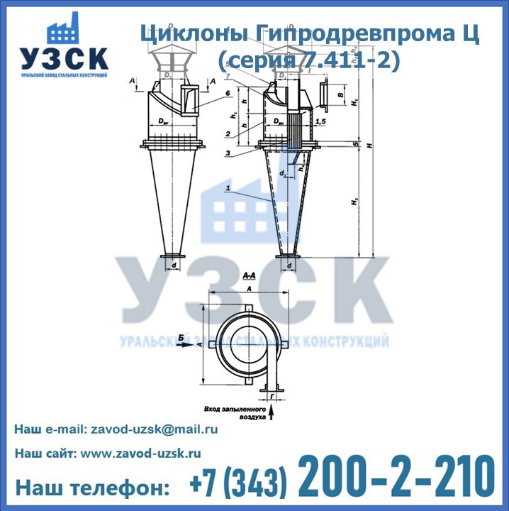 Циклоны Гипродревпрома Ц (серия 7.411-2) высокого качества можно купить в компании «УЗСК» в Самаре. Наши специалисты предоставят всю необходимую информацию информацию и помогут с выбором модели циклона. Подробные технические характеристики, конструкцию, параметры, ассортимент и стоимость продукции можно также найти на сайте УЗСК.
