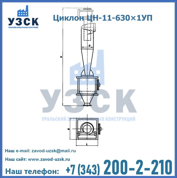 Уральский Завод Стальных Конструкций в Самаре производит и продает надежное, эффективное и производительное оборудование, имеющее длительную гарантию и большой эксплуатационный ресурс. УЗСК также предлагает циклоны из нержавеющей стали высокого качества. По желанию заказчика толщина стали для циклона и бункера может быть увеличена. Заказать и купить циклоны ЦН-11 высокого качества и по доступной цене можно через наш сайт или по указанному в разделе «Контакты» телефону.