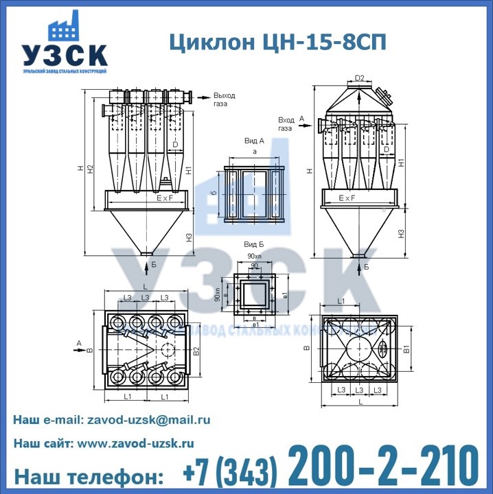 Завод «УЗСК» в Самаре предлагает большой выбор циклонов ЦН-15-500×8СП и прочих устройств, полностью укомплектованных и готовых к эксплуатации. Мы гарантируем соответствие оборудования всем требованиям ГОСТ и ТУ, износостойкость и высокую производительность предлагаемого оборудования. Уральский Завод Стальных Конструкций изготавливает и продает надежное, эффективное и производительное оборудование, имеющее длительную гарантию и большой эксплуатационный ресурс. Если требуется изготовить циклон нестандартных размеров, то такой вариант выполнения заказа тоже предусмотрен, так как предприятие имеет собственные производственные площади и надежных поставщиков. На все поставляемое или производимое оборудование имеются чертежи и прочая техническая документация. Заказать и купить циклоны или прочее оборудование высокого качества и по доступной цене можно через наш сайт или по указанному в разделе
