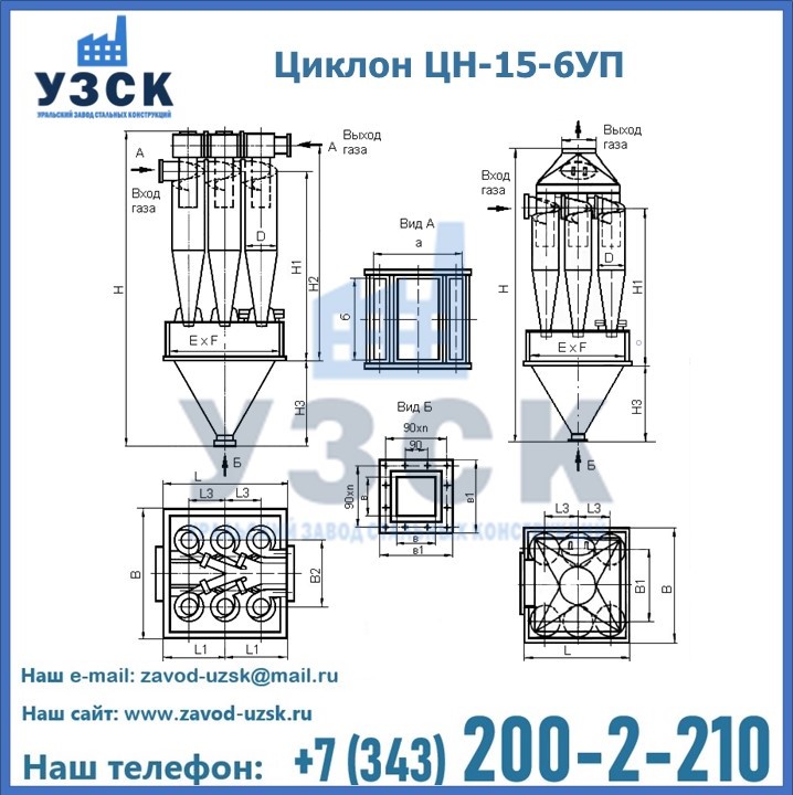 Завод «УЗСК» в Самаре предлагает большой выбор циклонов ЦН-15-900×6УП и прочих устройств, полностью укомплектованных и готовых к эксплуатации. Мы гарантируем соответствие оборудования всем требованиям ГОСТ и ТУ, износостойкость и высокую производительность предлагаемого оборудования. Уральский Завод Стальных Конструкций изготавливает и продает надежное, эффективное и производительное оборудование, имеющее длительную гарантию и большой эксплуатационный ресурс. Если требуется изготовить циклон нестандартных размеров, то такой вариант выполнения заказа тоже предусмотрен, так как предприятие имеет собственные производственные площади и надежных поставщиков. На все поставляемое или производимое оборудование имеются чертежи и прочая техническая документация. Заказать и купить циклоны или прочее оборудование высокого качества и по доступной цене можно через наш сайт или по указанному в разделе «Контакты» телефону.