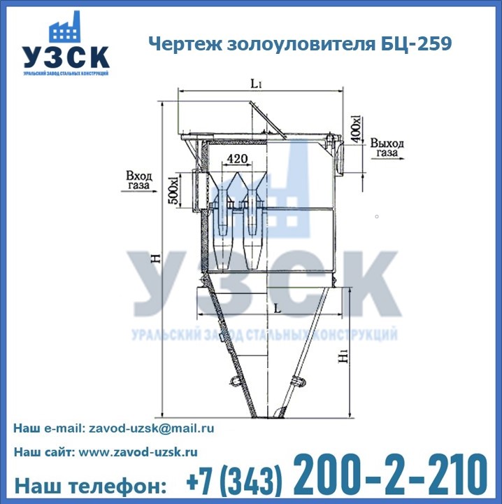 Если вы планируете купить то или иное оборудование, например, циклоны-золоуловители БЦ-259, то рекомендуем заказать данный товар на сайте УЗСК. Мы производим и реализуем продукцию высокого качества по приемлемой цене. Эксперты Уральского Завода Стальных Конструкций в Самаре проконсультируют вас по всем вопросам, помогут сделать выбор и оформить заказ без лишних временных затрат. Мы гарантируем соответствие нашей продукции всем требованиям ГОСТ и ТУ, а также износостойкость и высокую производительность предлагаемого оборудования. Если требуется изготовить циклон нестандартных размеров, то такой вариант выполнения заказа тоже предусмотрен, так как предприятие имеет собственные производственные площади и надежных поставщиков. На все поставляемое или производимое оборудование имеются чертежи и прочая техническая документация. Заказать и купить циклоны или прочее оборудование высокого качества и по доступной цене можно через наш сайт или по указанному в разделе «Контакты» телефону.