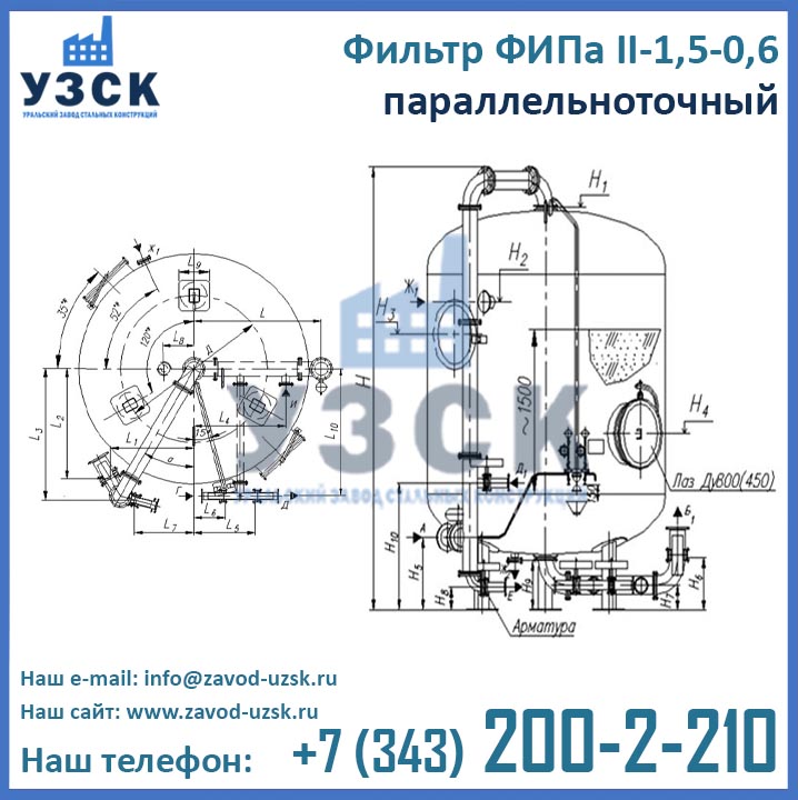 Цены фильтра ФИПа 2 ступени 1,5-0,6 формируются в соответствии со множеством факторов, таких как материальное исполнение, тип распределительных устройств, требуемая комплектация, необходимости доставки и т.д. Для расчета цены фильтров ФИПаII-1,5-0,6 в Самаре обратитесь в отдел продаж Уральского Завода Стальных Конструкций по координатам, указанным в разделе «Контакты».